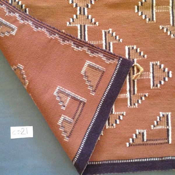 Beautiful, finer weave, raised outlined rug in a salmon color. Very good condition.Ca. 1980s46" x 37"