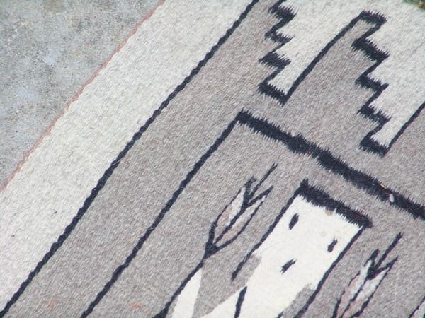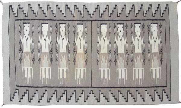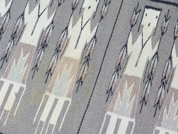 Vintage, fine weave, Yei figured rug done in muted earth tones and outlined with black. Very good condition.Ca. 1980s24" x 48"