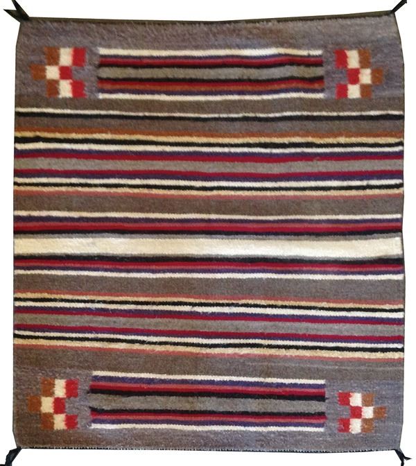 Traditional, finer weave, single saddle blanket with colorful, striped sections. Very good condition.Ca.1970s32" x 31"