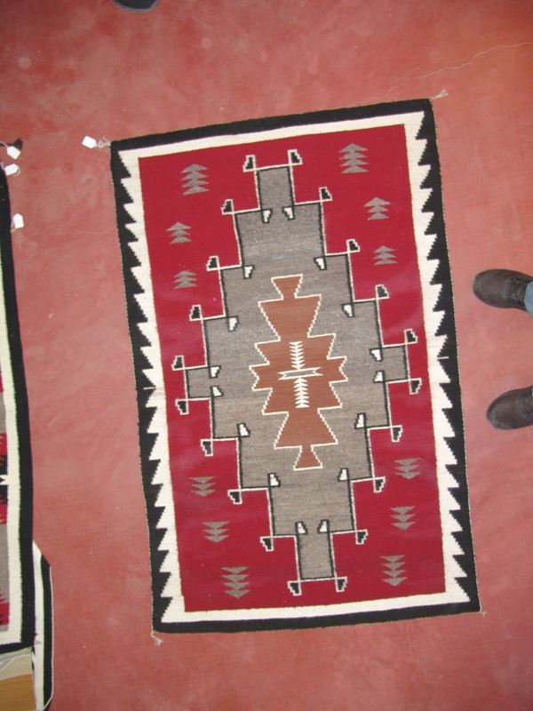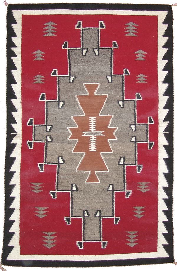 Ca. 1970s 60" x 38" Beautiful, Ganado rug with large central lozenge within a garnet red field. Very good condition.