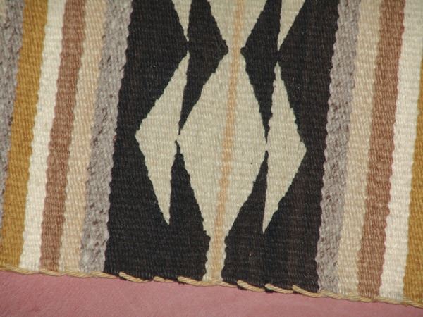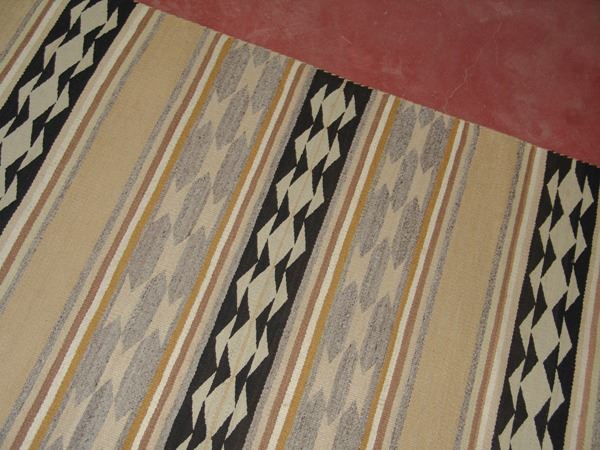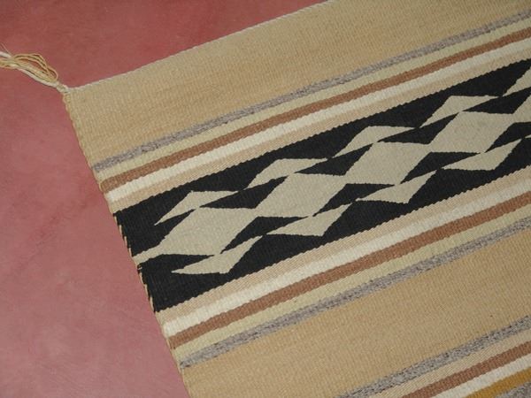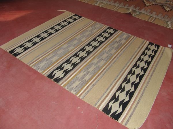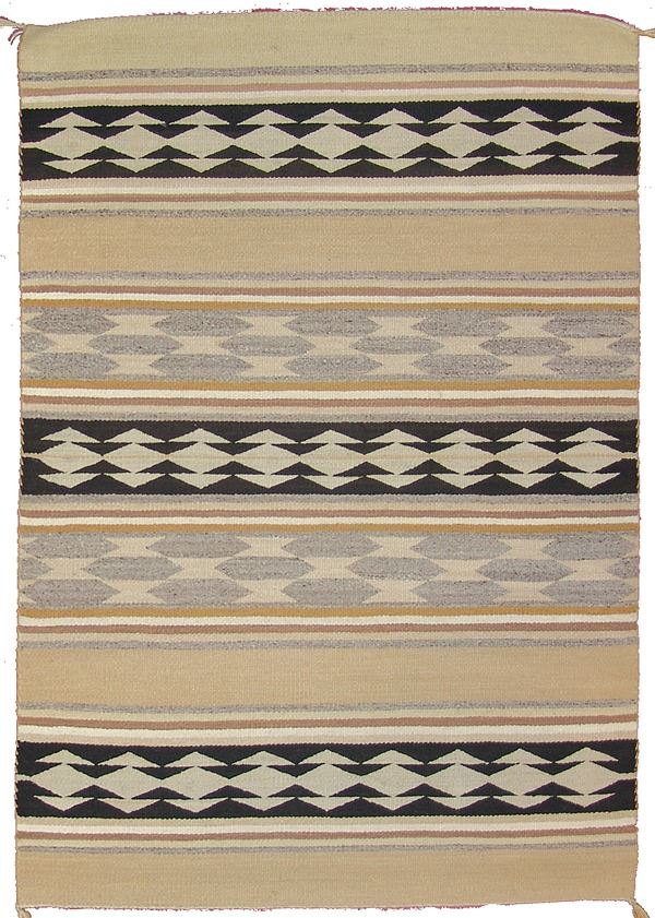 Early/Mid 1900s 49" x 35" Earlier, fine weave banded Wide Ruins rug done in natural earth tones. Very good condition. Nice patina.