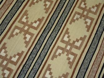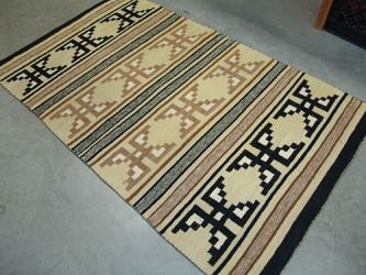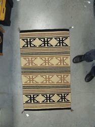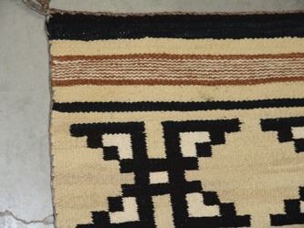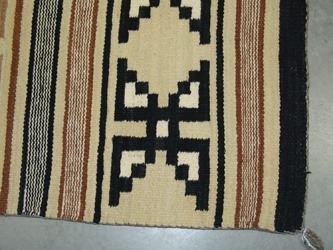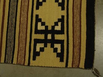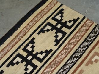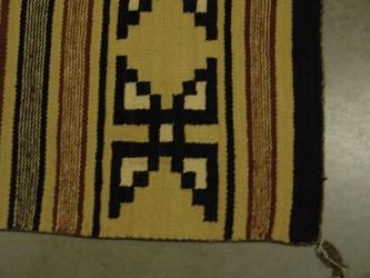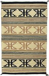 Vintage, finer weave, Crystal rug with bands of large, geometric symbols, each flanked with bands of traditional wavy lines. Very good condition.
