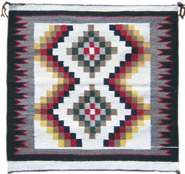 Circa 2000, Dinah Hatahle, Unusual Teec Nos Pos area rug with unique checkerboard pattern done in 8 different colors. 31" x 31"