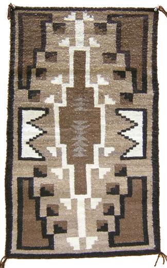 Natural color, hand spun wool Two Gray Hills rug. 39" x 24"