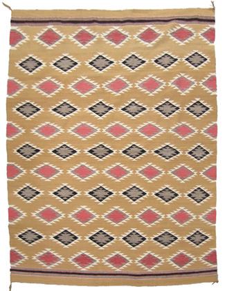 Beautiful, stepped diamond rug with serrated elements in interesting color; very good condition. 70" x 82"