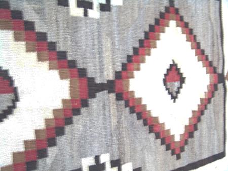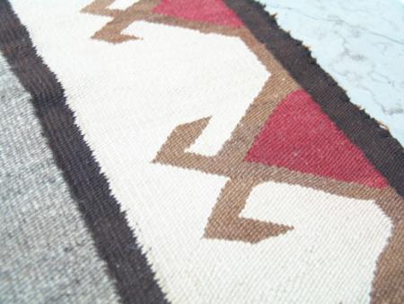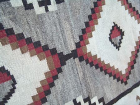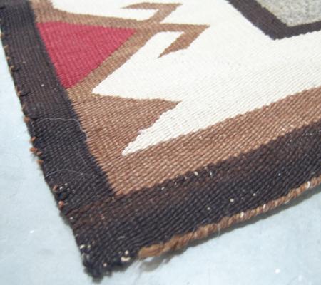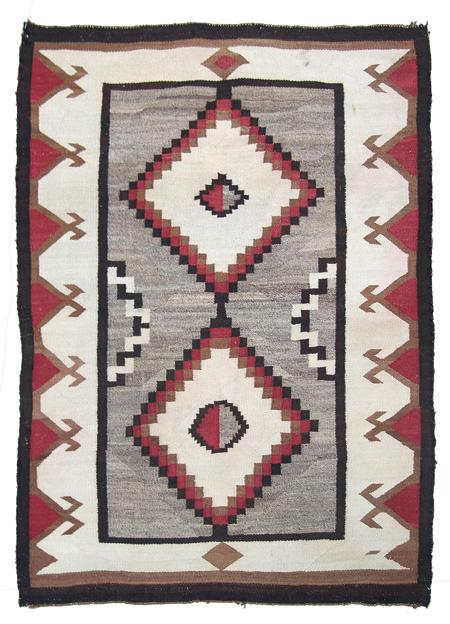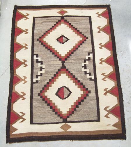 Classic six-color Crystal rug with double diamond central lozenge and interesting edging. Condition: very good with some light red bleed in one area. 62" x 47"