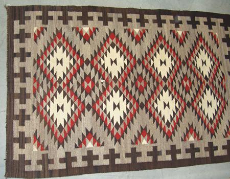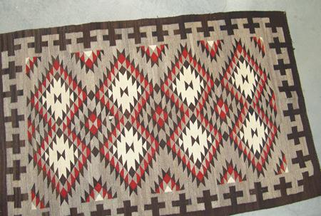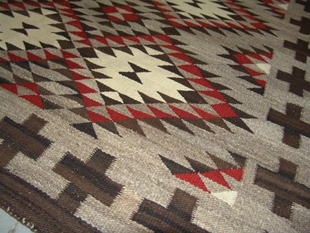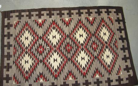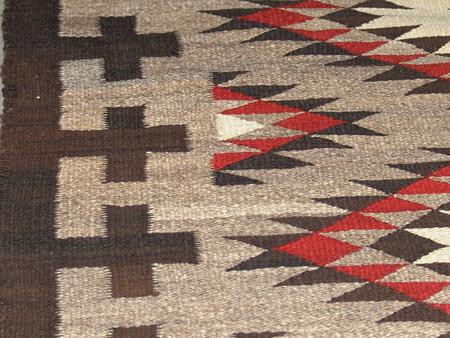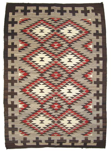 Tight weave eye dazzler with fine serrated elements and crosses in the border. Condition: very good. 48" x 72"