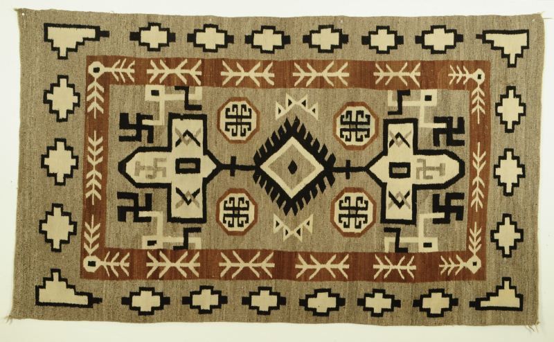 Fine early whirling logs Navajo Rug. Very good condition. Circa 1920s-30s. Came from the San Antonio estate of the original owner. Measures 46" x 77".