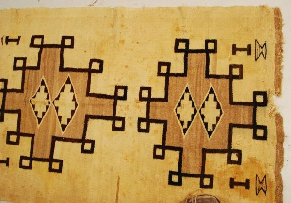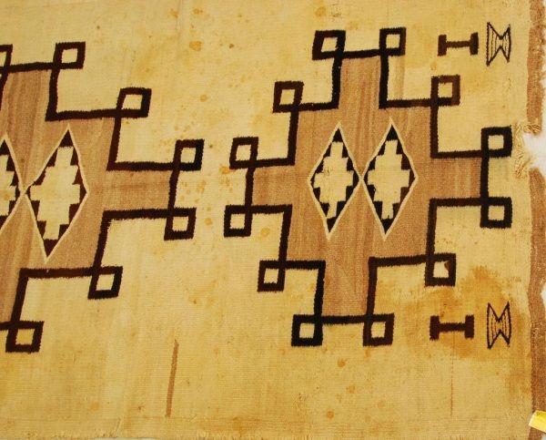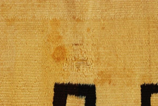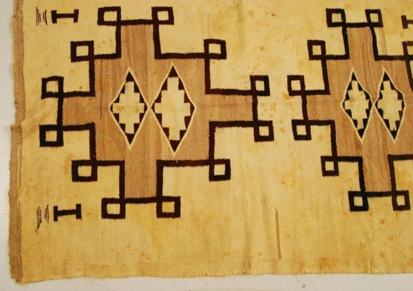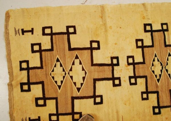 Edge wear & Use, visible stains, and good Lazy Lines. Measures 65"x42"