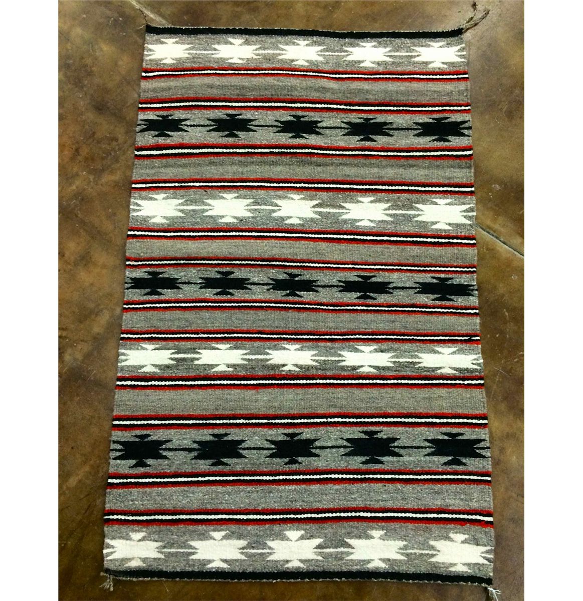 Measuring 27.5 x 44, this is a nice Navajo rug in good condition.