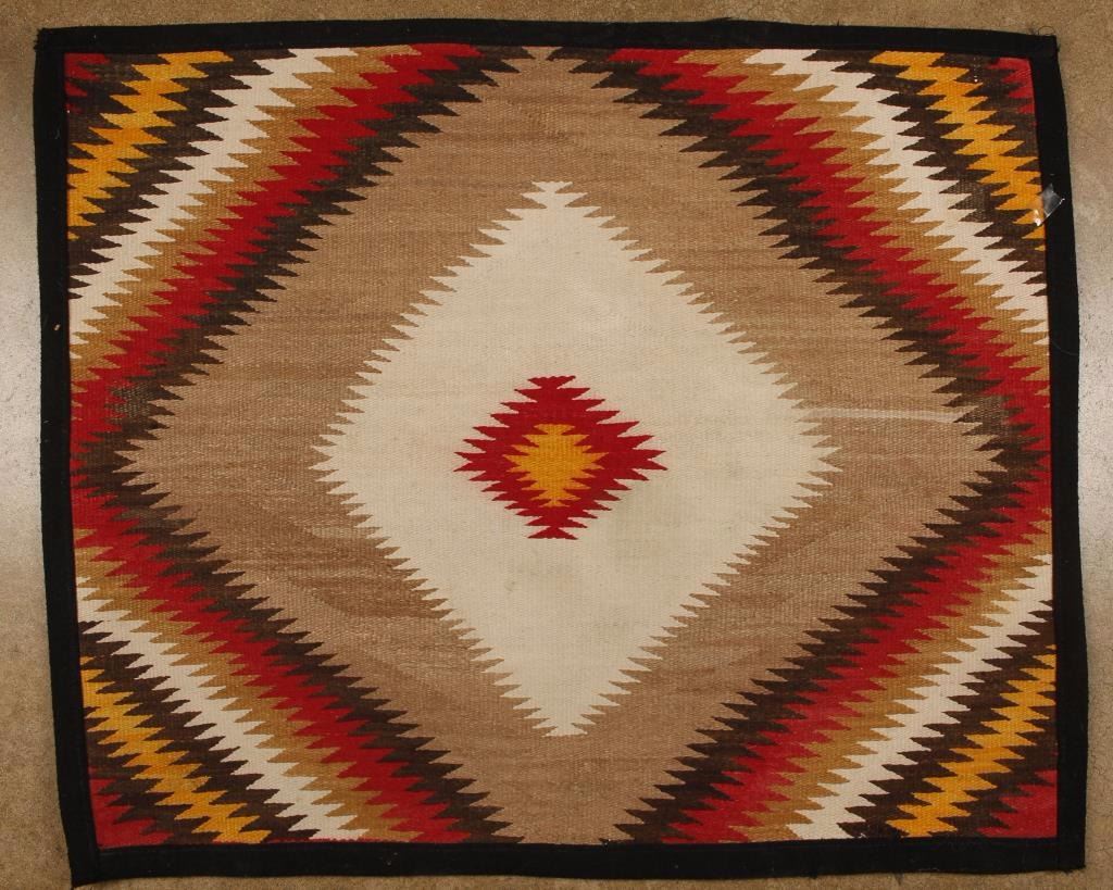 With large crystal pattern, in brown, black, red, and yellow. Measures 36X30. In very good condition.