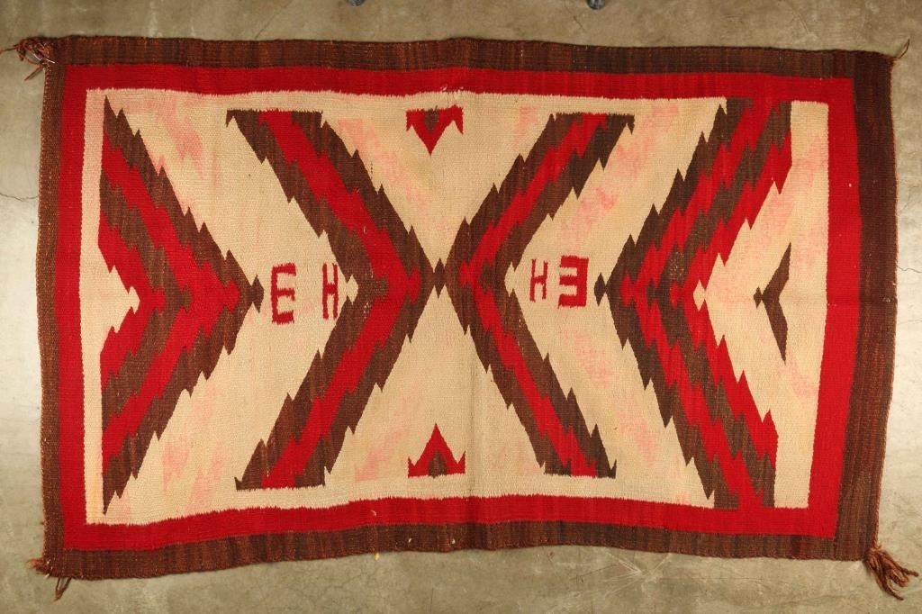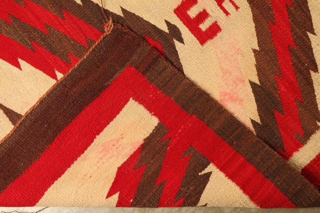 With large red X and woven "EH" in red, white,and black. Measures 60"X36" Condition- Fair as it has bleeds, one small hole otherwise good.