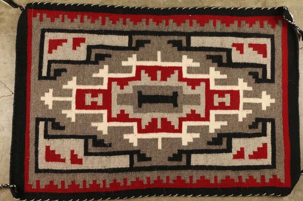 made by Jessie Littlebow in red, black, and white. Excellent condition, measures 23"x33"