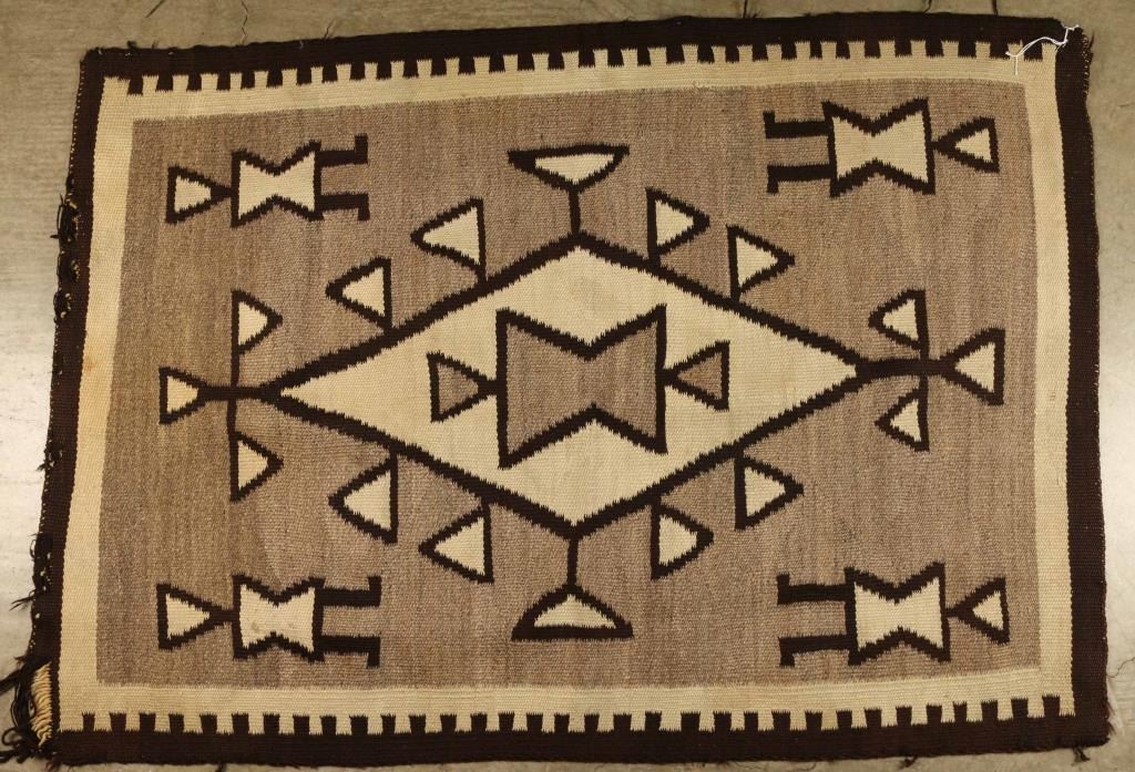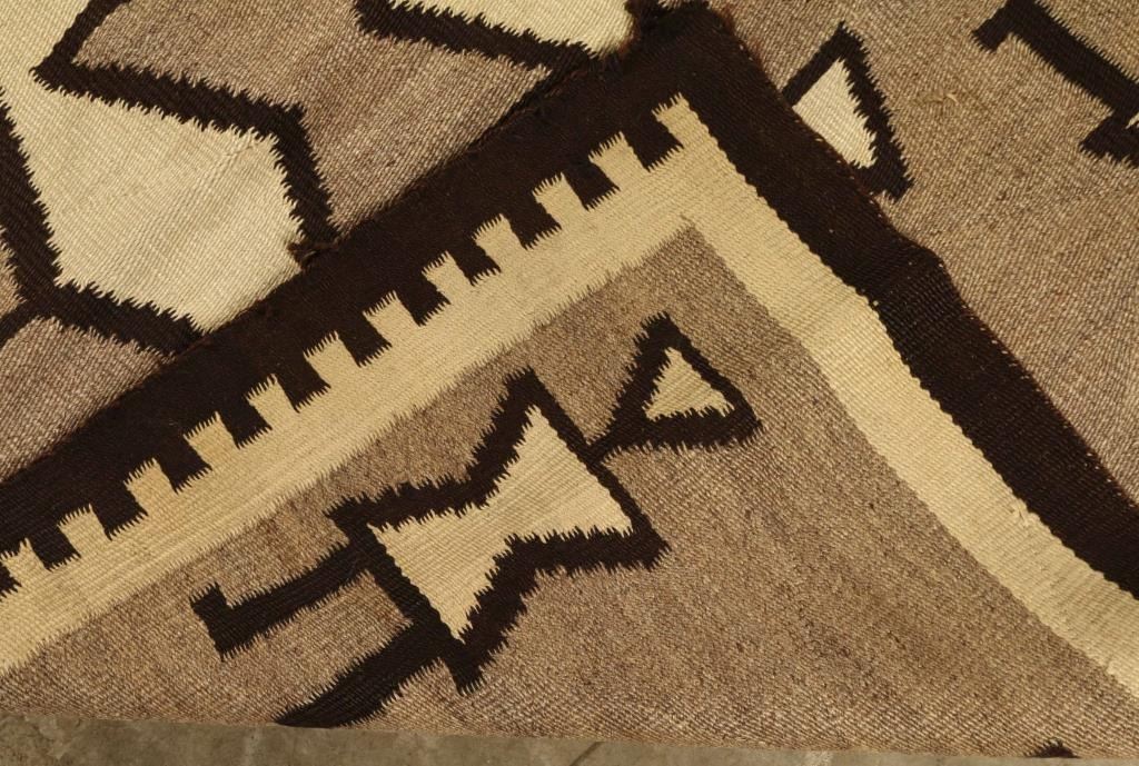 with crystal and human effigies in brown, grey and white measures 54" X 40" in fair condition fraying and losses on edges and scattered stains in the white