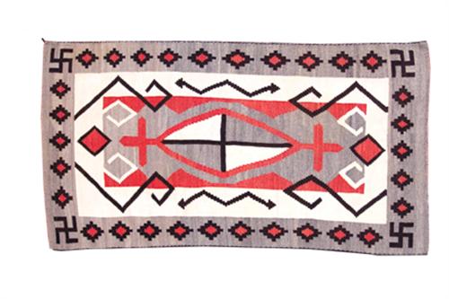 Navajo Rug. 73" x 42". Woven with excellent quality silky long staple Churro handspun wool on a wool warp.J.B. Moore Plate XXIV. Design originates out of the J.B. Moore Crystal Trading Post Catalog of 1911. c. 1915. Excellent condition. (est $4,500-6,500)
