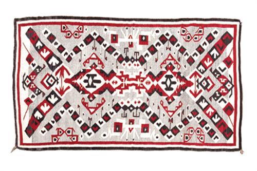 Navajo Rug. Bisti Badlands. 93" x 50". Woven with all Native handspun wools. c. 1920-30. Excellent condition. (est $4,000-6,000)