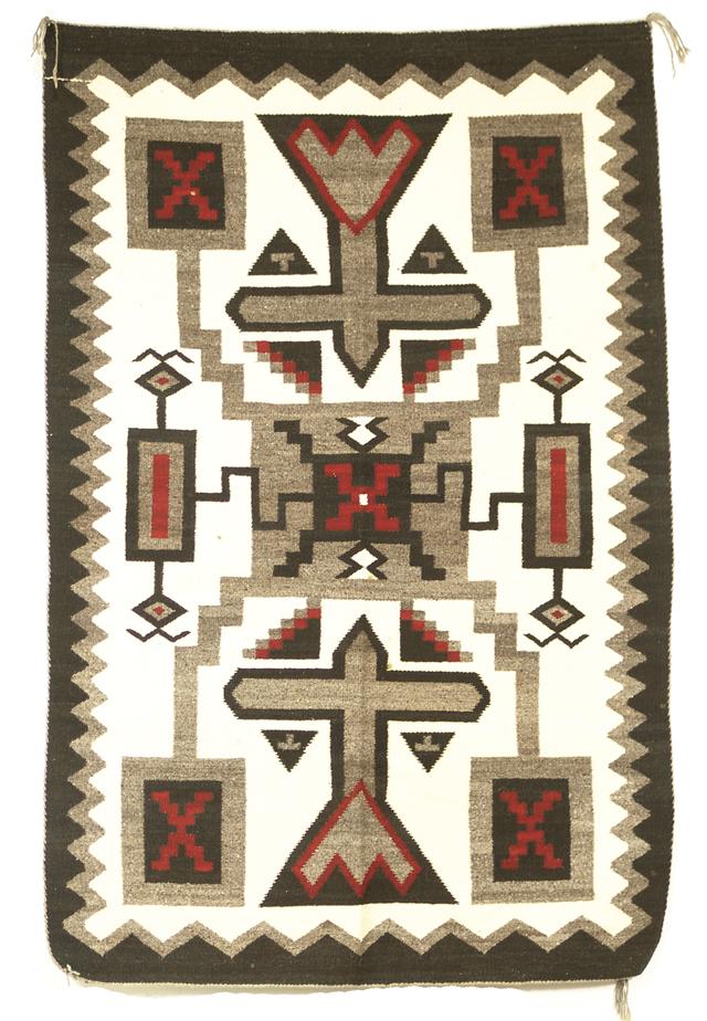 Mid 1900s, Fine hand loomed storm pattern rug; excellent overall condition. 41" x 62"