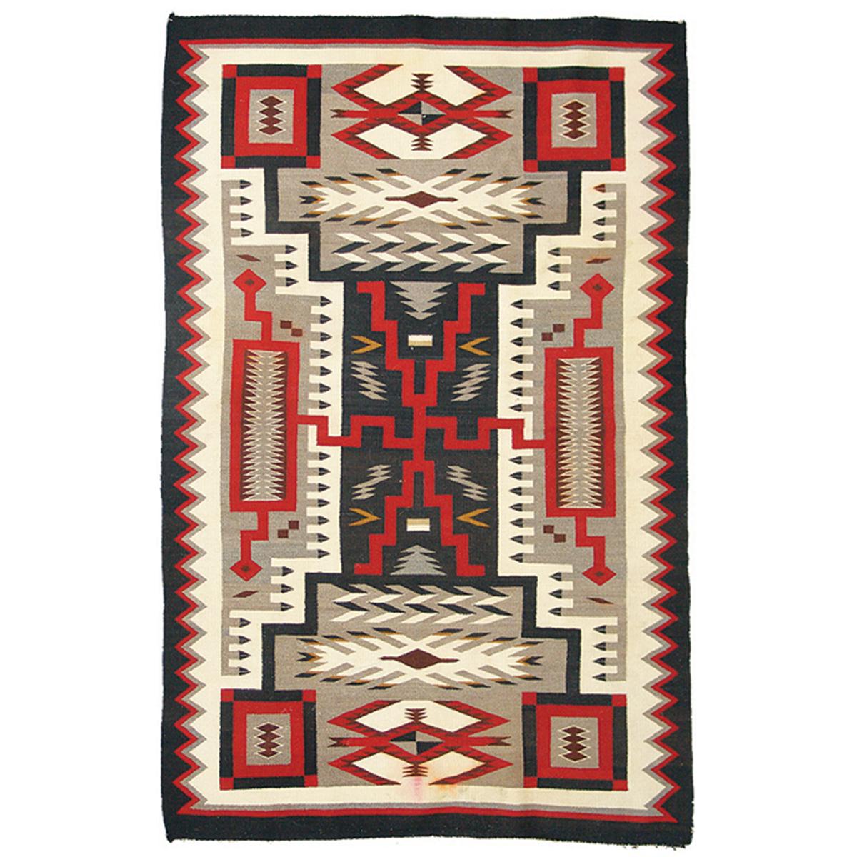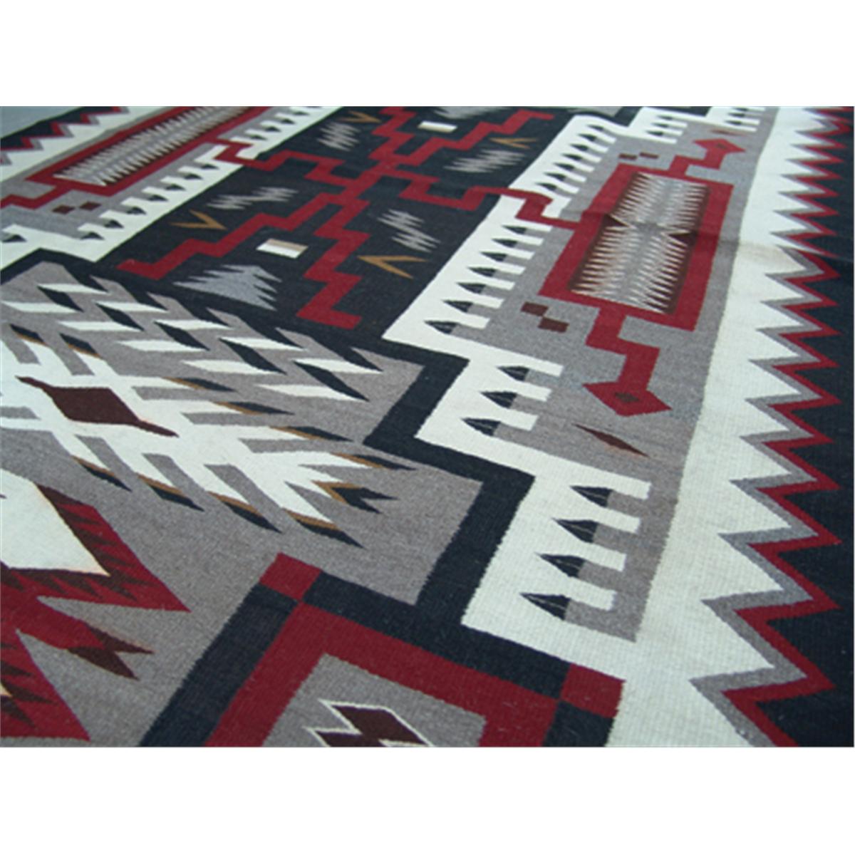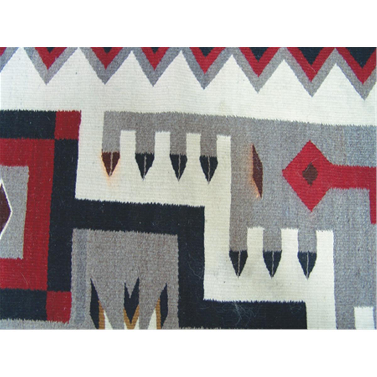 Home spun storm pattern rug with water bugs and lightning design, in natural and aniline colors. 7' x 4'6-1/2"