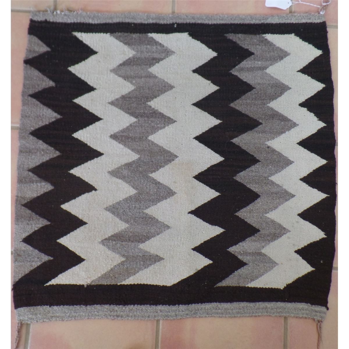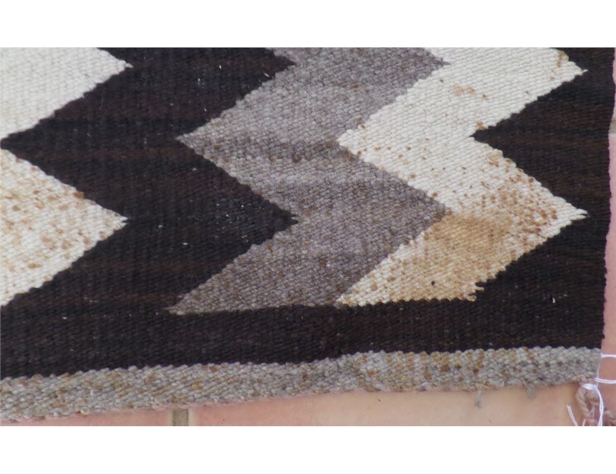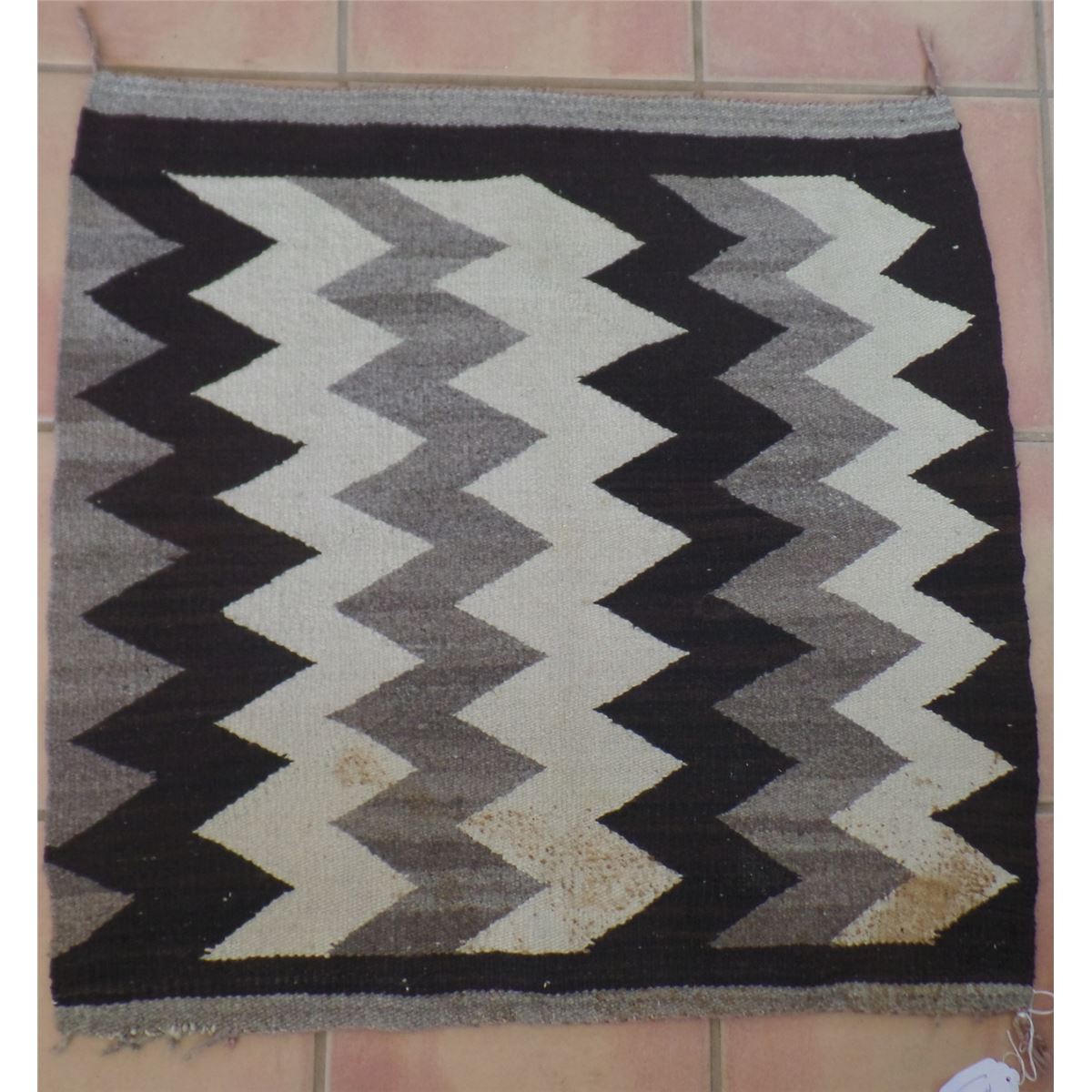 Navajo Saddle Blanket Weaving made from natural wool. It has some staining and edge damage. The Blanket measures 31 x 30 inches. It is an Eye Dazzler Type. Shipping $18.00