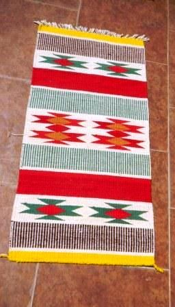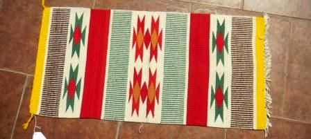 Navajo Saddle Blanket, measuring 40 x 20 inches. Condition is good, Circa 1960. Shipping $18.00