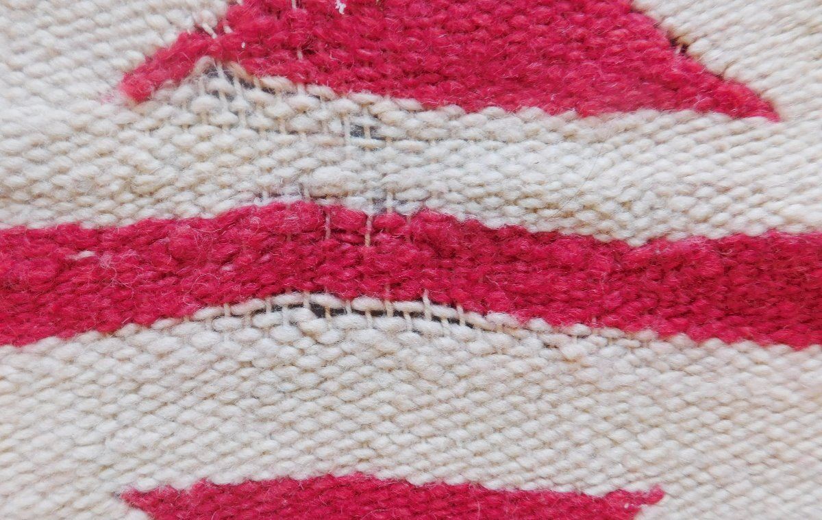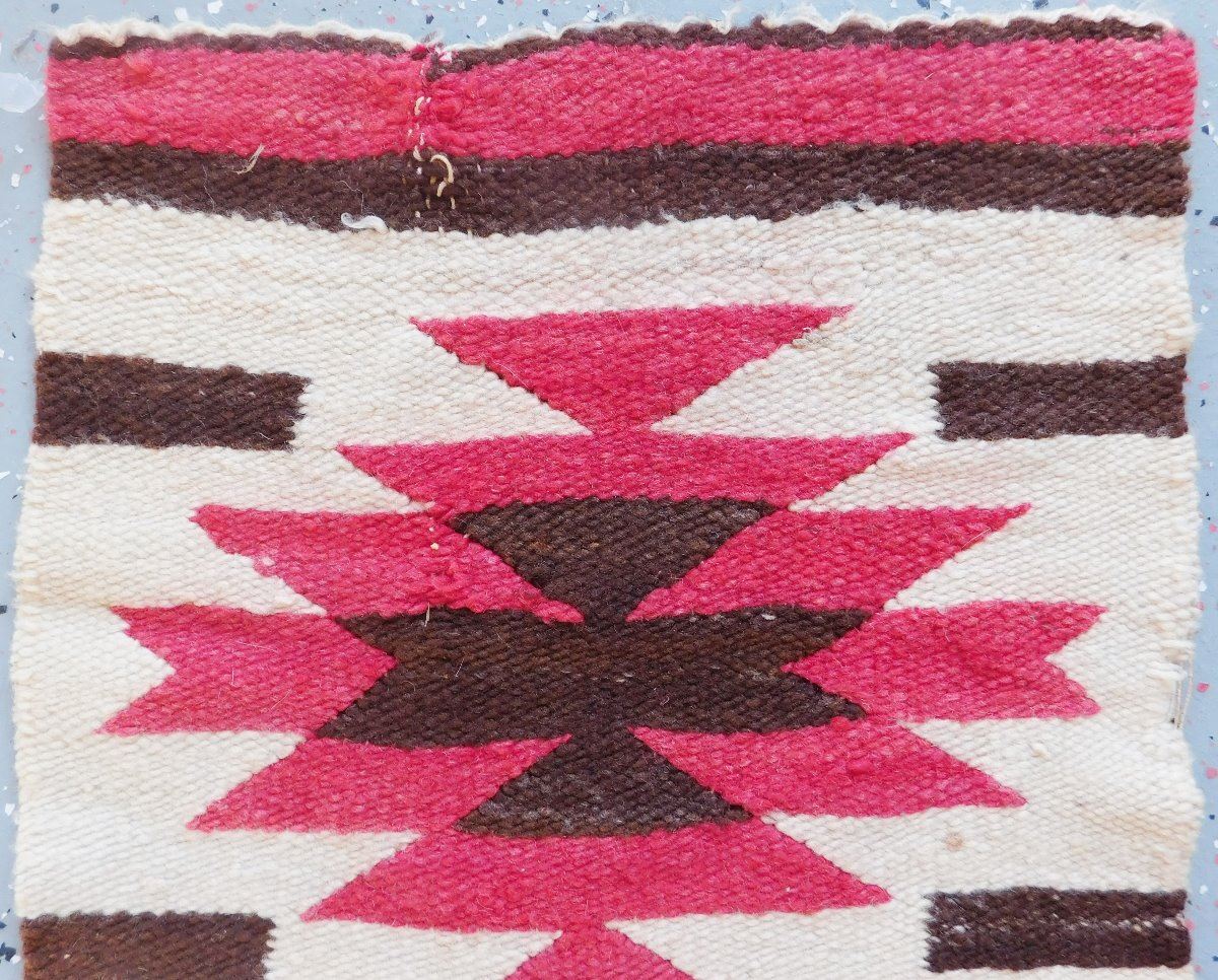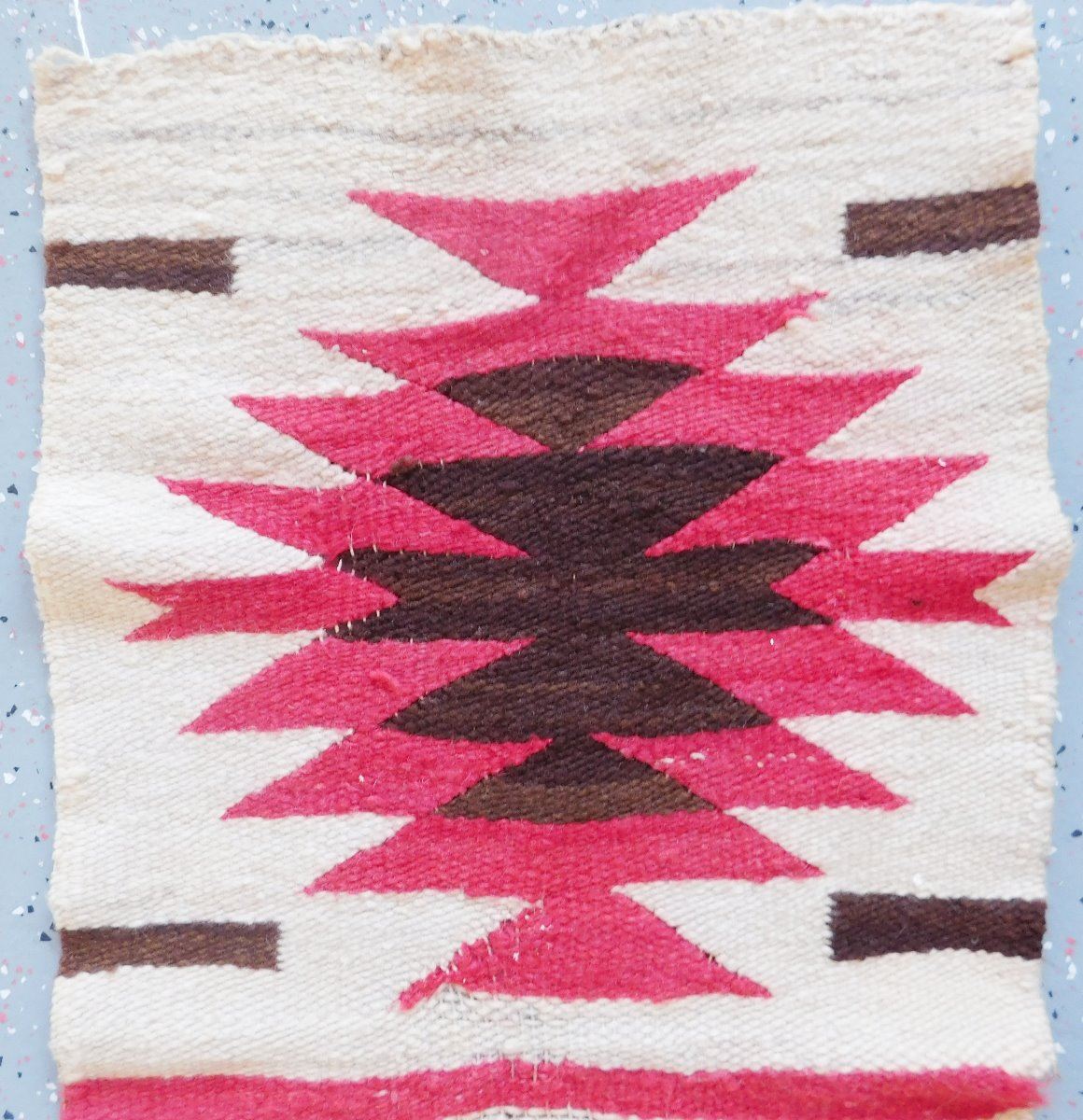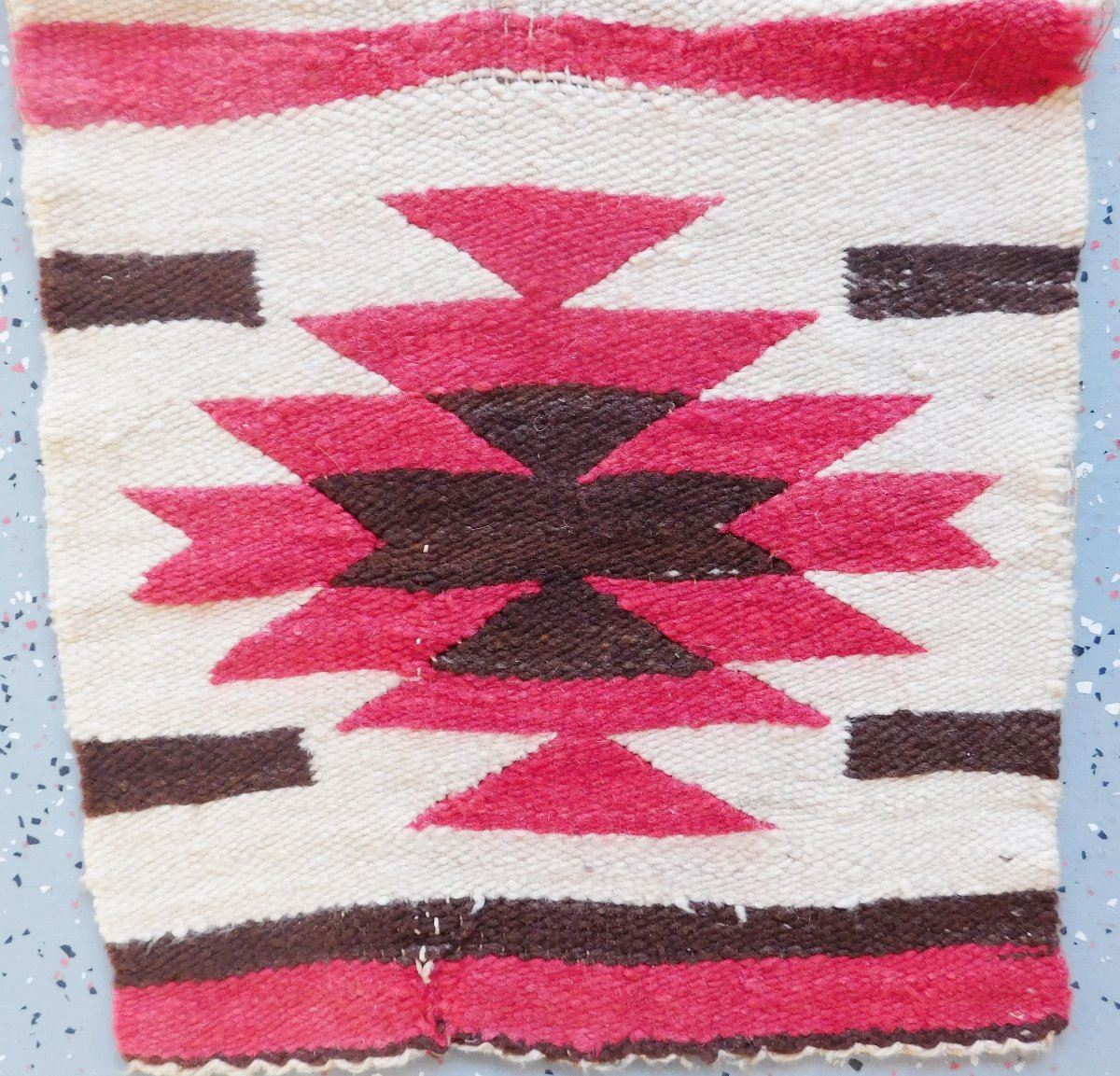 Navajo Saddle Blanket, circa 1940s. Made of wool and dye, the item is 33" x 16". New Mexico, Gallup. Nice looking weaving. Condition: Some wear, see images. Shipping: $20.00 w/insurance and signature.