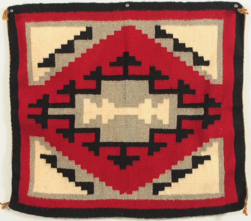 Red and Black Navajo Sampler Rug. Measures 26" x 23"