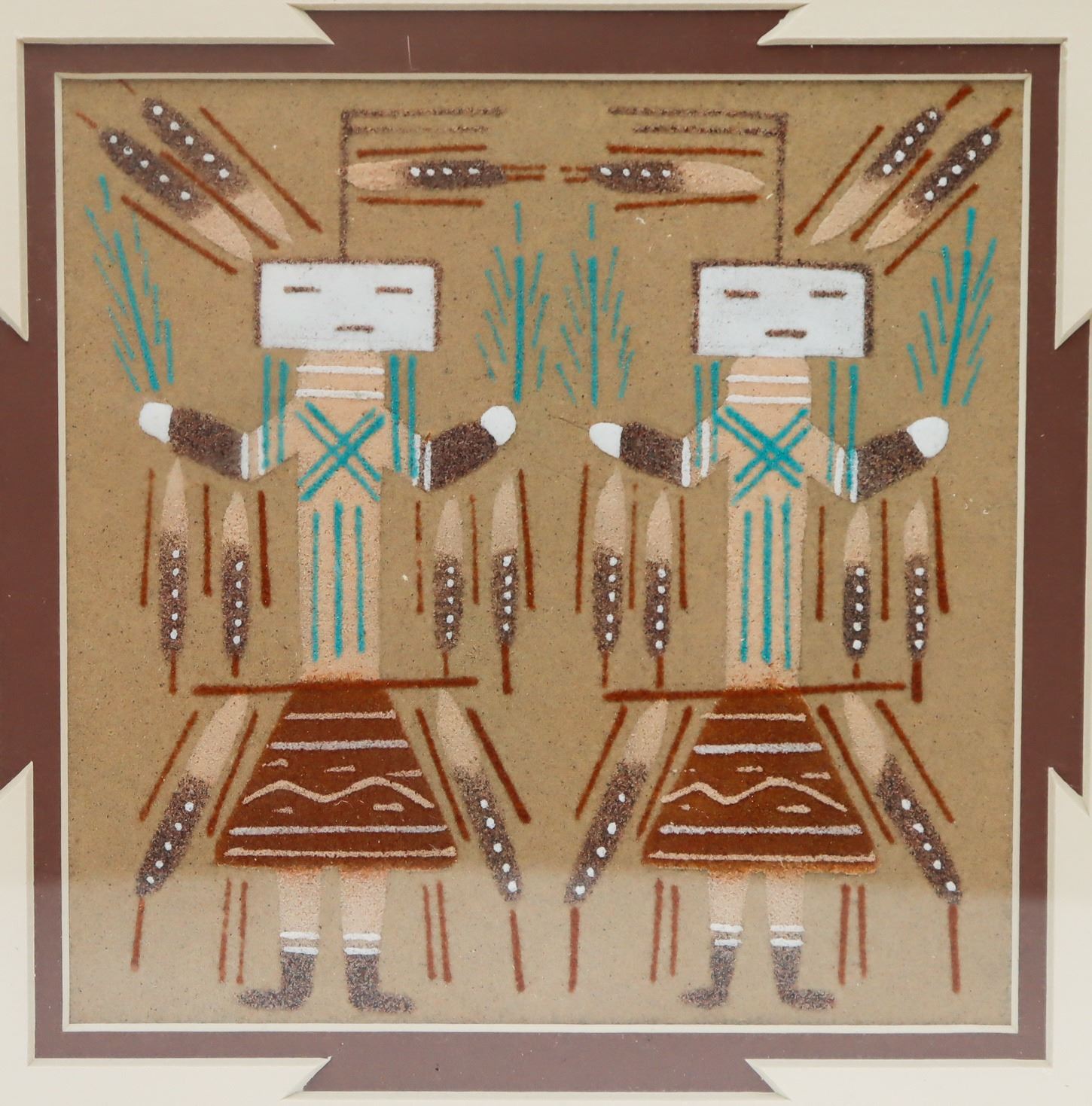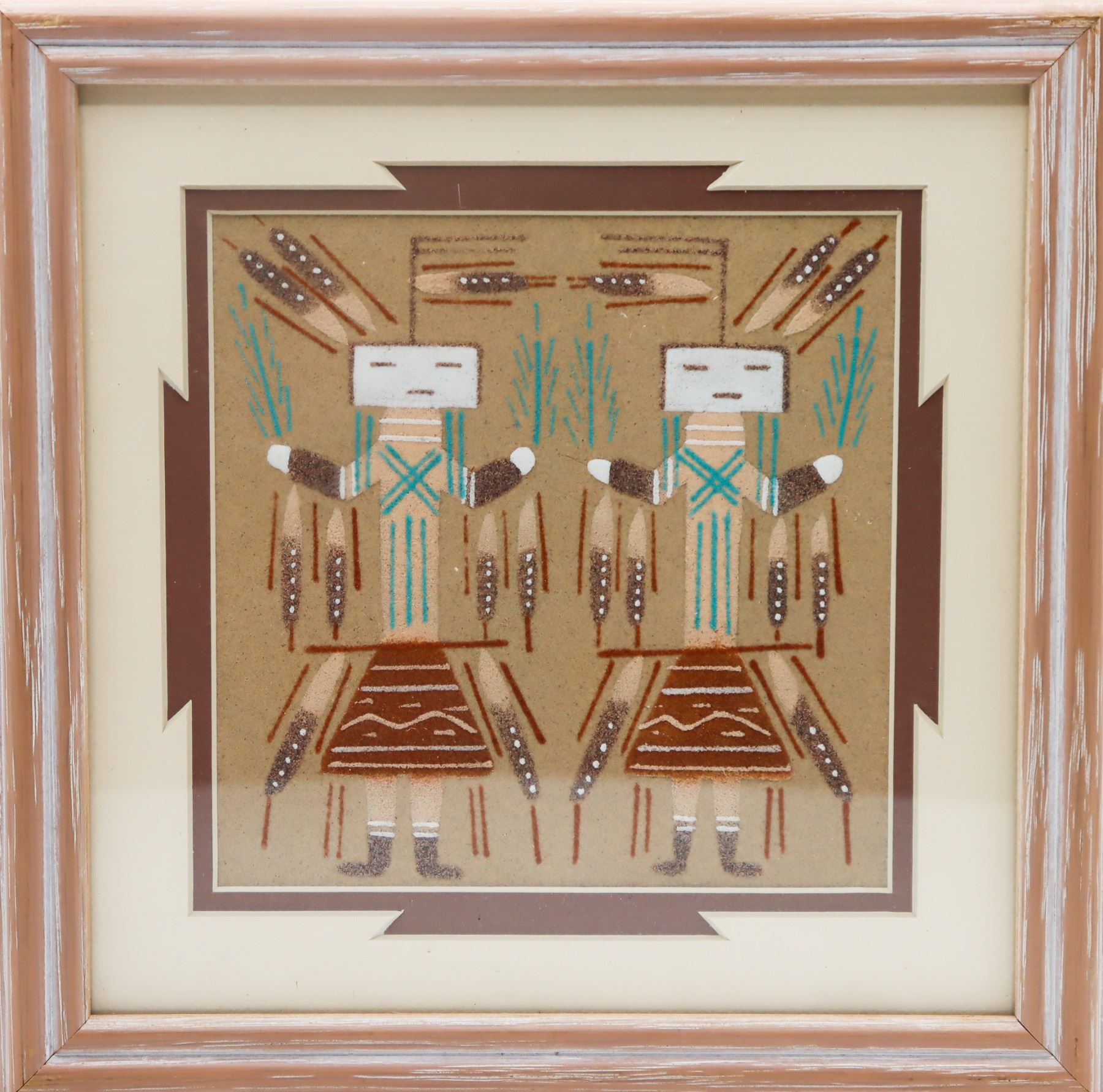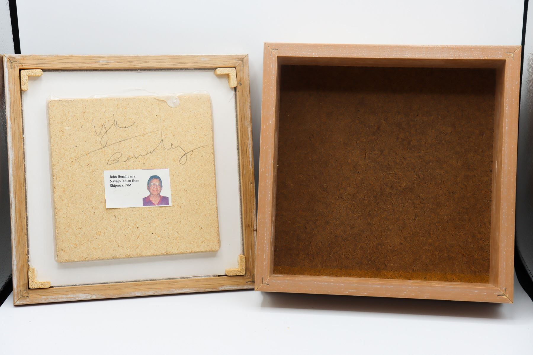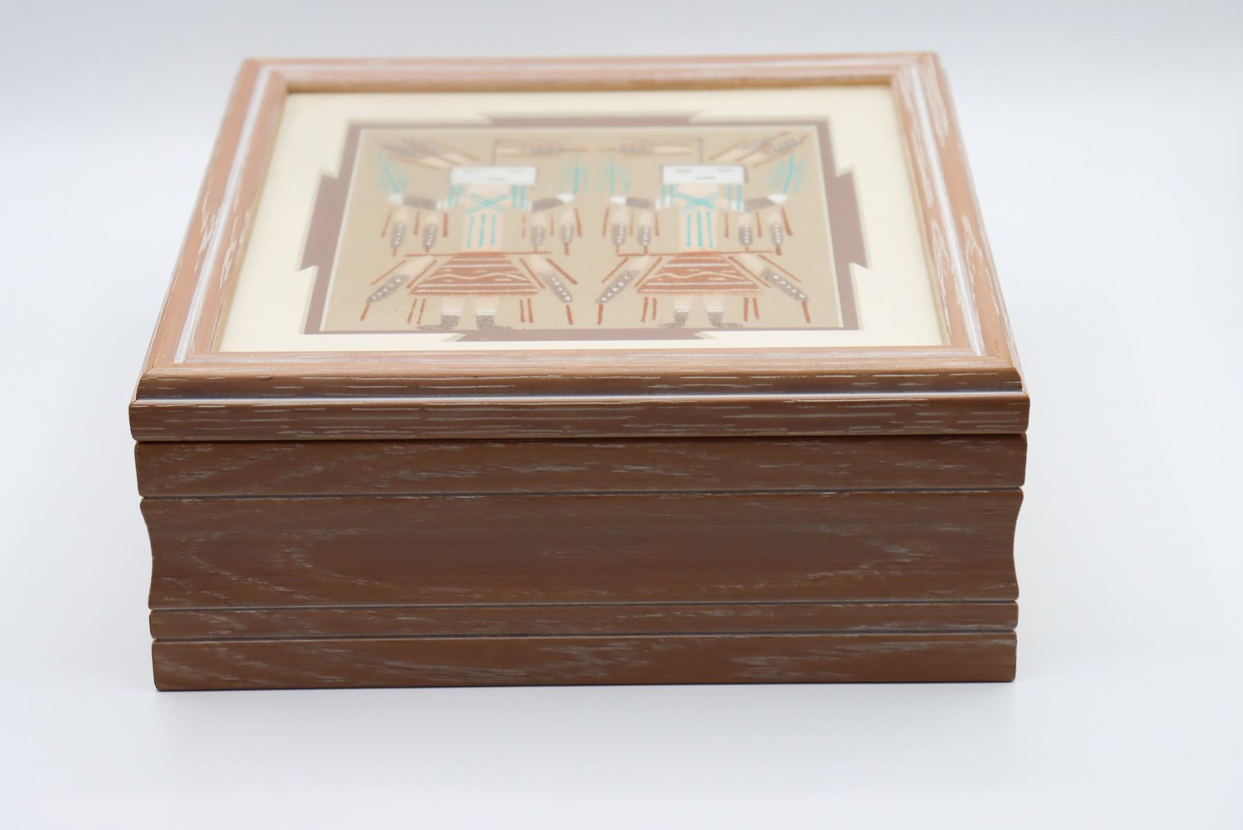 Constructed box with Navajo Sand Art image on lid, signed on bottom: John Benally. John Benally is a Navajo artist from Shiprock, New Mexico.