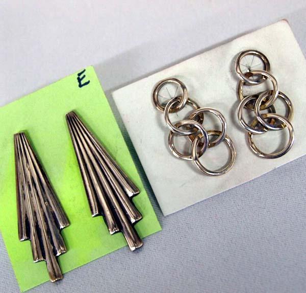 Navajo Sand Cast Earrings & Five Circles Earrings. 2 pr pierced earrings, both sterling silver Native American made earrings. Circles are 2''L. SHI $15
