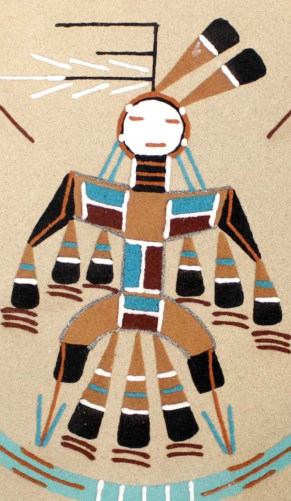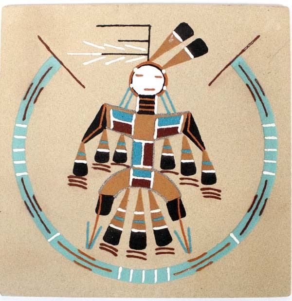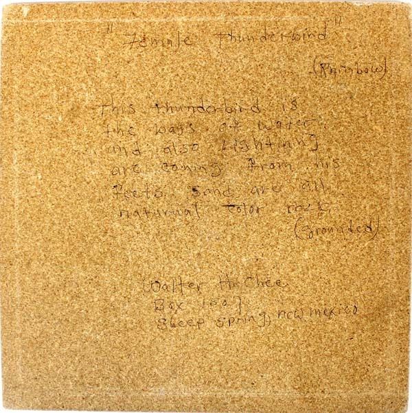 Native American Navajo Sand Painting ''Female Thunderbird'' by Walter H. Chee, measures 12'' square and is signed on the back