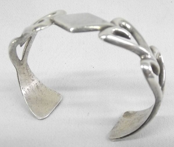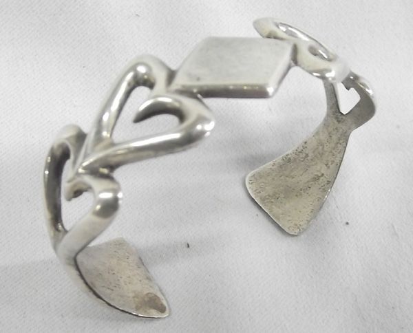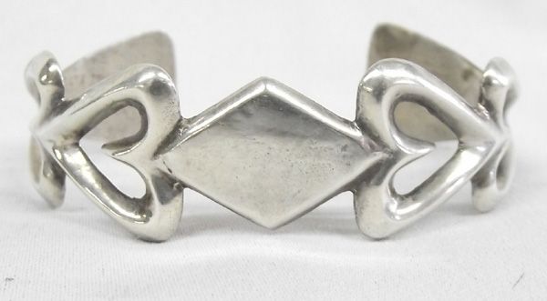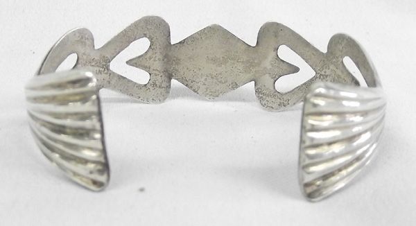 Navajo Sandcast Bracelet. This heart design bracelet tested at 800 silver. It measures 6.25'' inside including opening and 3/4'' wide.