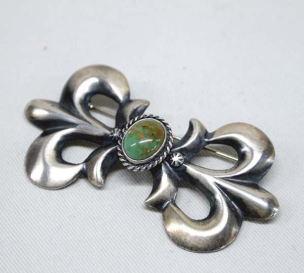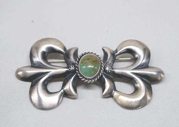 Navajo Sandcast Sterling & Green Turquoise Pin. Measures 2.5''x1.25''. SHI $15.