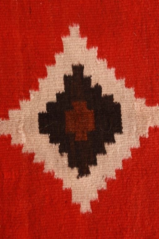 Featured in this lot is this Navajo second phase chief's blanket circa 1950's. The rug features a wonderfully and professionally crafted wool construction that shows a stepped decoration of medallions that show a coloration of red, brown, black and off white. The condition of this rug is fair with some wear to the rug but otherwise in fair to good overall condition. The measurements of this rug are 60" x 48".