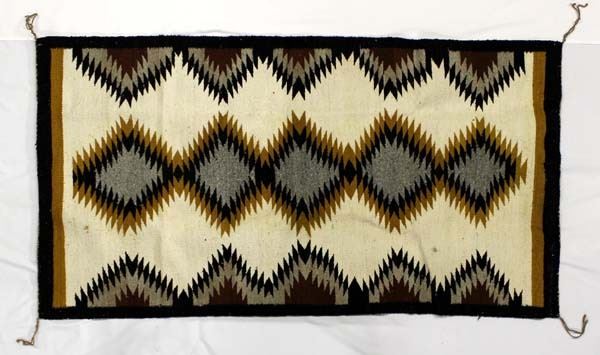 Vintage Native American Navajo Serrated Diamond Wool Textile Rug, measures 36'' x 60'', 4 cornered tassels intact, gorgeous colors and patterns, nice thick weave