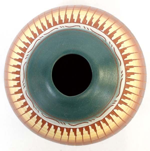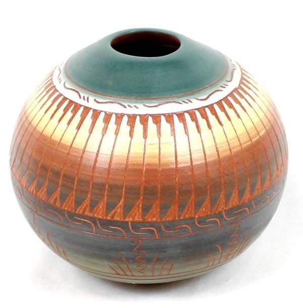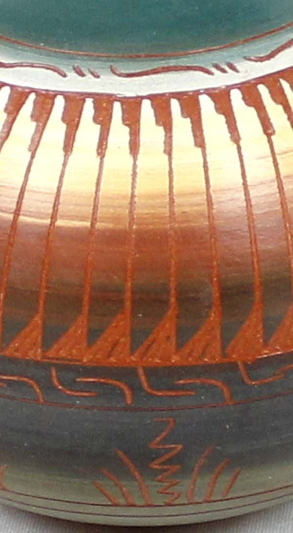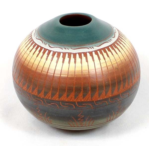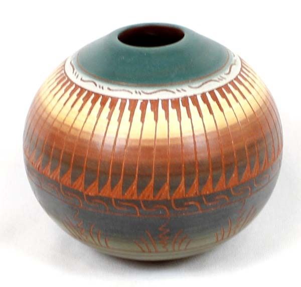 Navajo Sgraffito Polychrome Seed Jar. Signed by artist. 4 1/2'' x 5''.