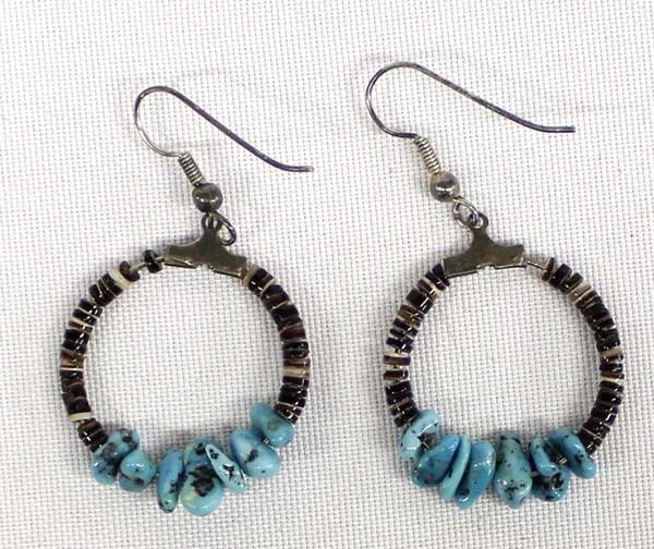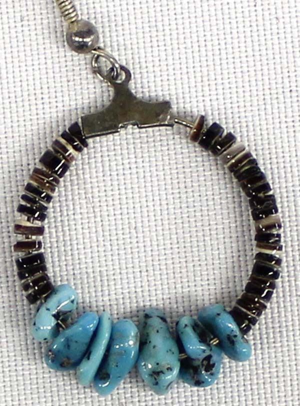 Native American Navajo Pen Shell Heishi & Turquoise Nugget Earrings, measure 1''D