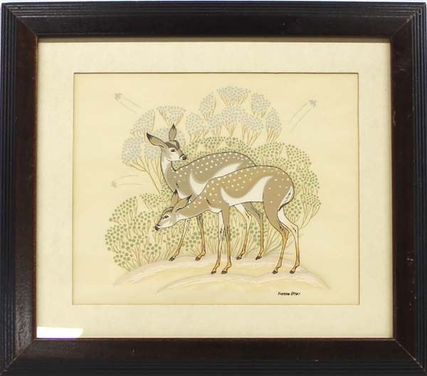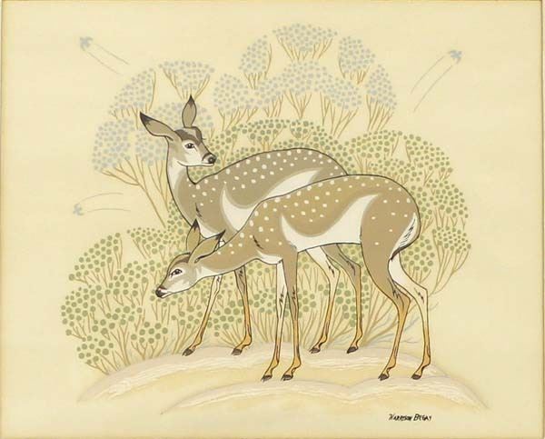 Native American Navajo Silkscreen Print by Harrison Begay, visual measures 9'' x 11'', overall framed measurement 14.5'' x 16.5'', matted