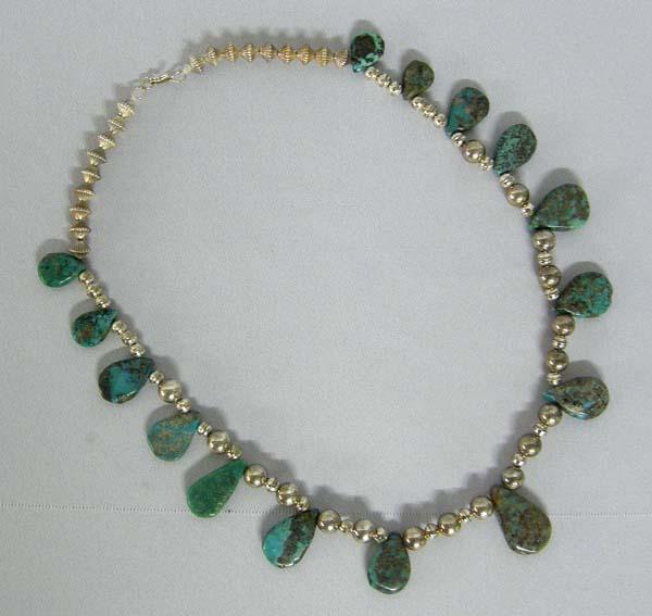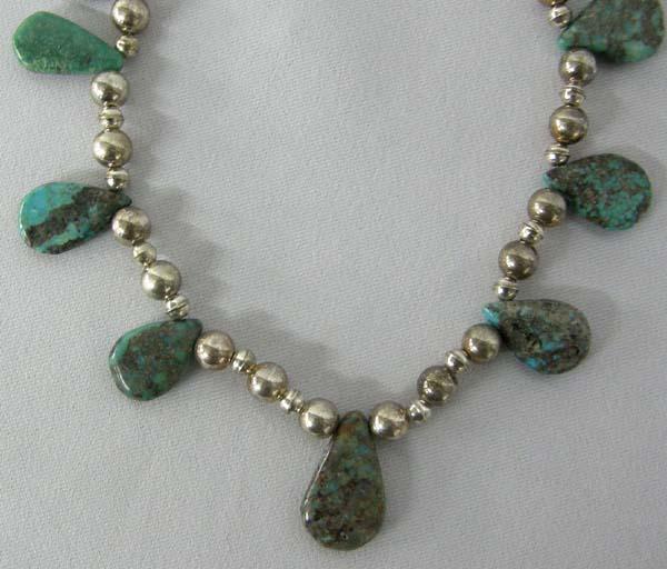 Navajo Silver And Turquoise Tab Necklace, measures approx. 18'', largest turquoise tab measures approx. 1''. SHI $15.