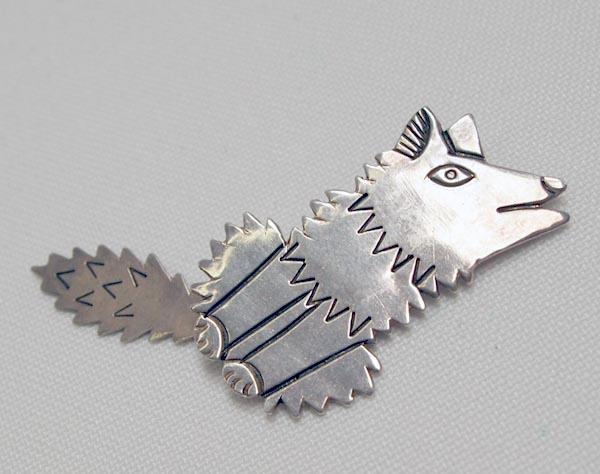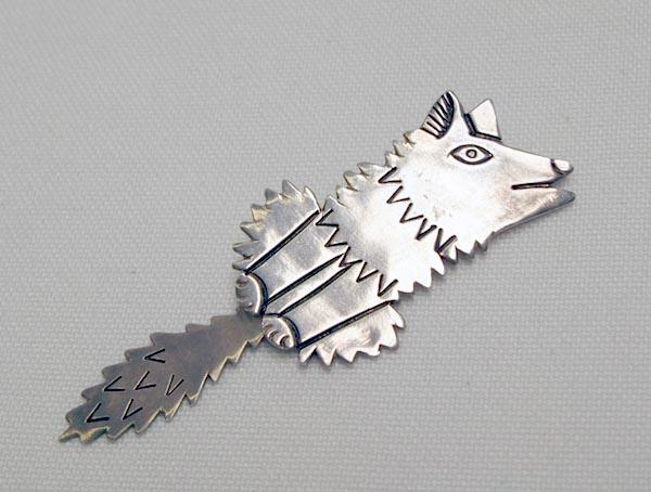 Navajo Silver Coyote Pin by Kristi Davis. Measures 2.5''x7/8''. SHI $15.