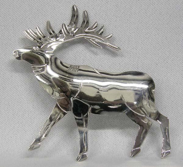 Navajo Silver Elk Pin by F. Yazzie. Measures approx. 2.5''Wx2.5''H. SHI $15.