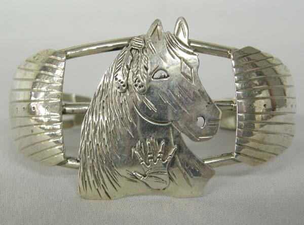 Navajo Silver Horse Bracelet by Ricky Peeder, marked Sterling, inside measures 7'' and Width 1.25''. SHI $15.