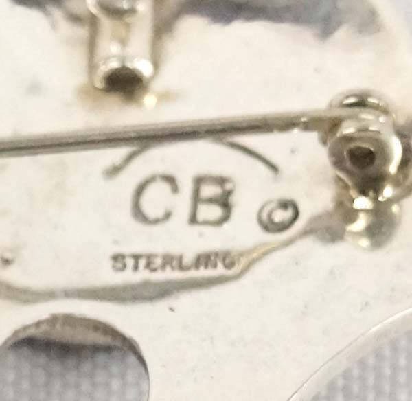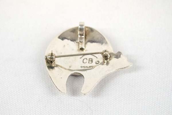 Native American Navajo Sterling Channel and Stone to Stone Inlay Bear Pin Pendant by Charlie Bowie, measures 1.5'' x 1.5'', hallmarked and stamped sterling