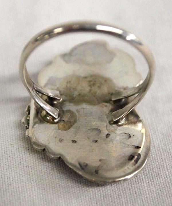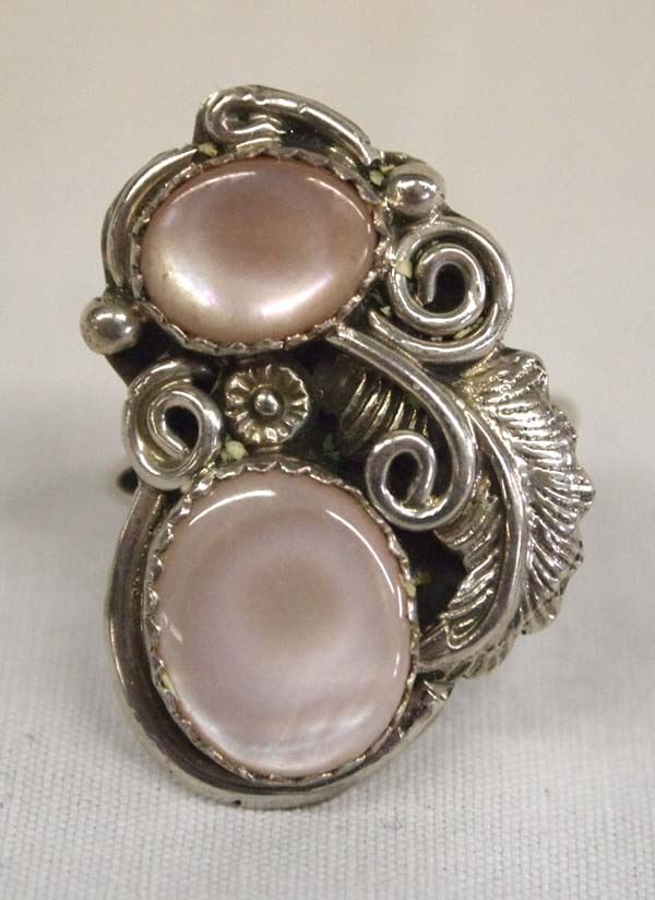 Native American Navajo Silver Pink Mother of Pearl Ring, Size 8, measures 1.25''L, 5.13g in total wt.