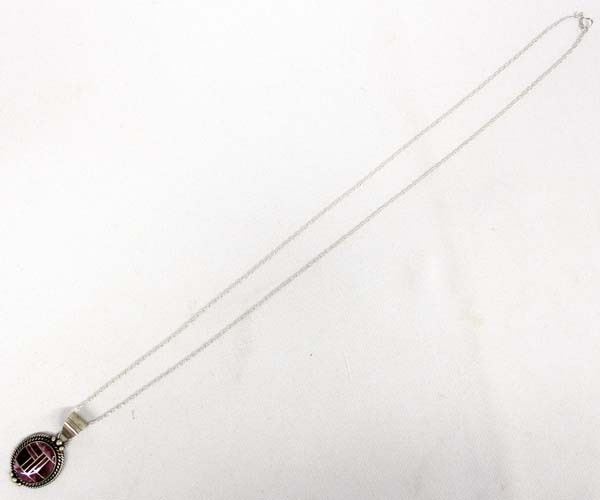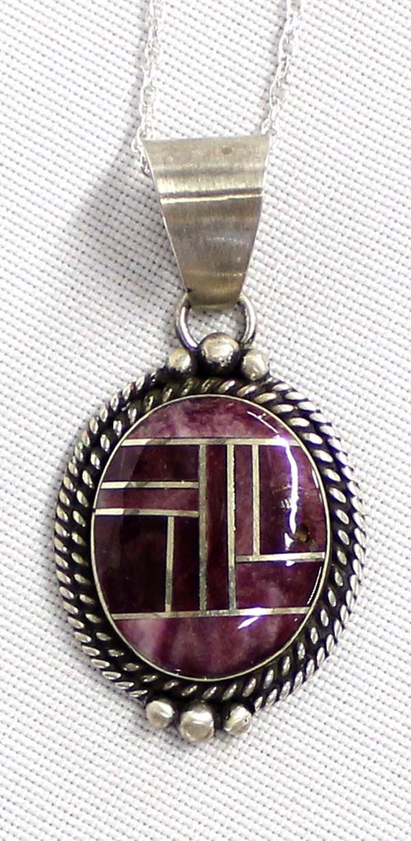 Native American Navajo Sterling Silver Channel Inlay Purple Shell Pendant Necklace, hallmarked S and stamped sterling, beautiful colors, pendant measures 1.75''L x 7/8''W, sterling chain measures 22''L end to end, very elegant piece