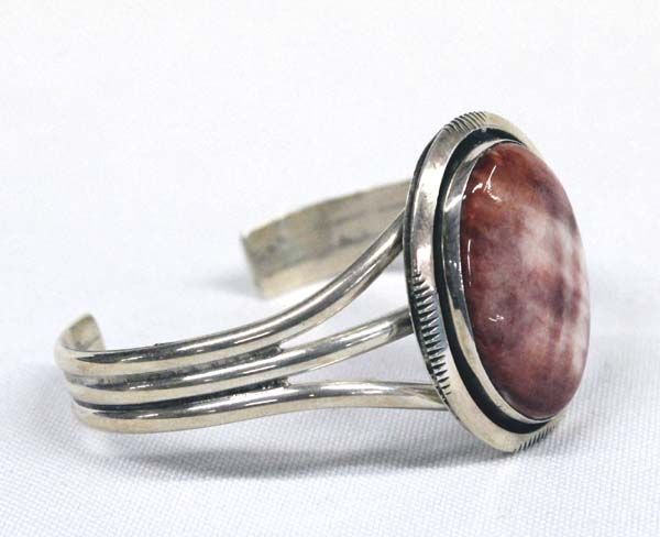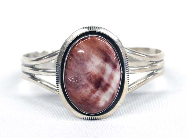 Navajo Silver Red Shell Bracelet by Augustine Largo, inside measures 6.5'' which includes opening x 1.5''W, stamped sterling and hallmarked AL, 33.11g in total wt.