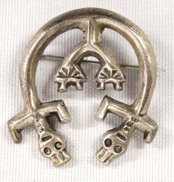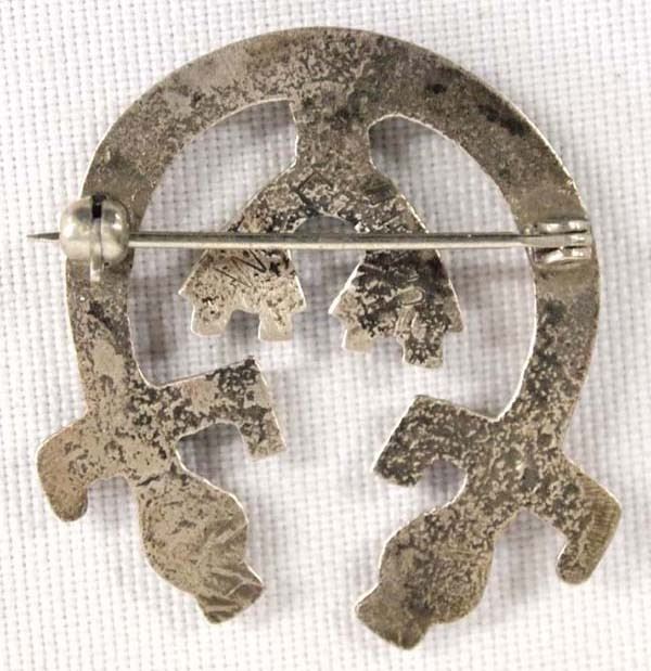 Native American Navajo Sterling Silver Sandcast Double Rainbow Man Pin, measures 1.5''W