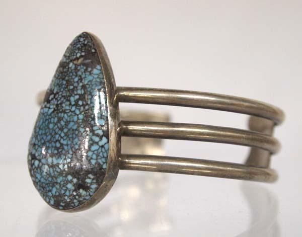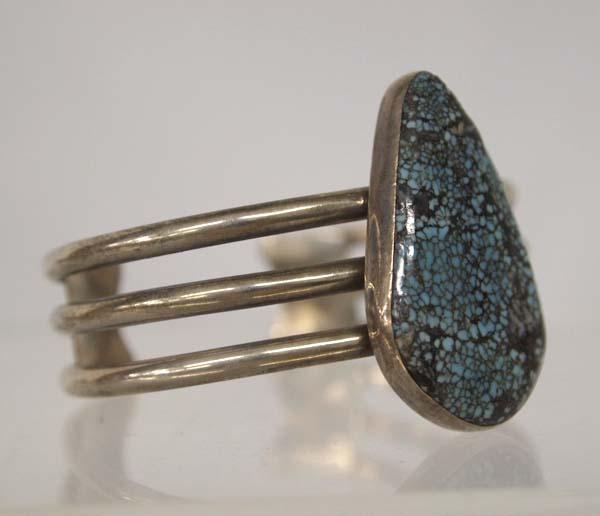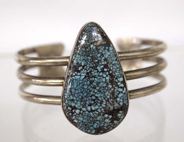 Navajo Silver Spider Web Turquoise Bracelet, measures approx. 6.25'' inside measurement x 1.25''W. SHI $15
