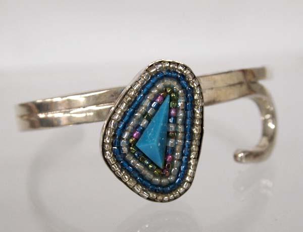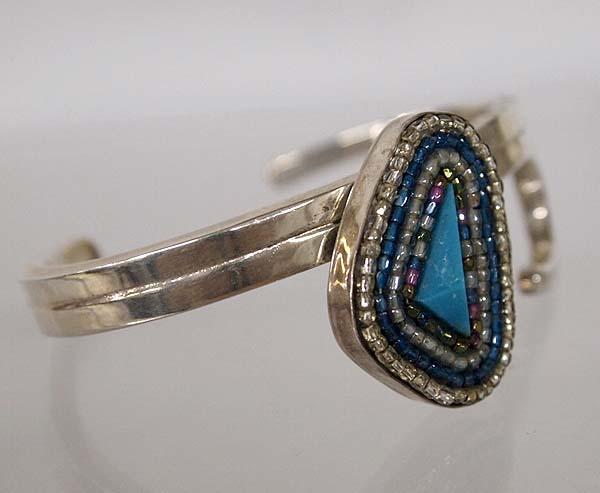 Navajo Silver Turquoise Beaded Bracelet, measures inside approx. 5.75''1.25''W. SHI $15