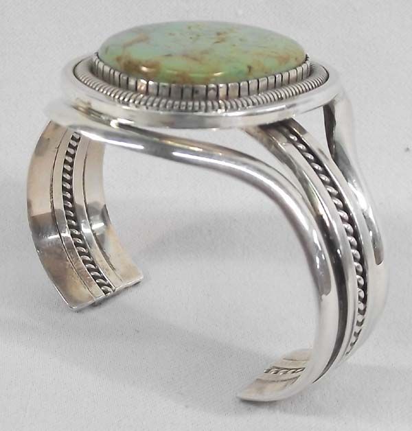 Navajo Silver ''Turquoise Mountain'' Turquoise Bracelet-Walter Vandever Wrist size 6.5'' including the opening x 2'' H. The stone measures 1 3/8'' x 1 1/8''. Beautiful copper color matrix in a greenish color turquoise.