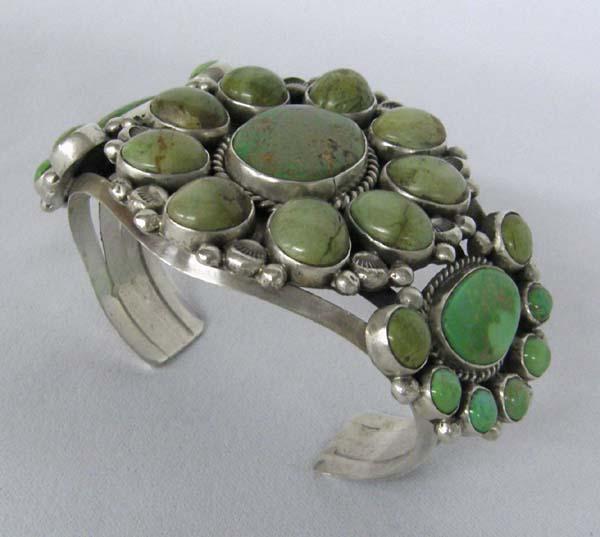 Navajo Silver Turquoise Bracelet by Mike Platero. Measures approx. 6.75 inside and 2.25'' wide. SHI $15.