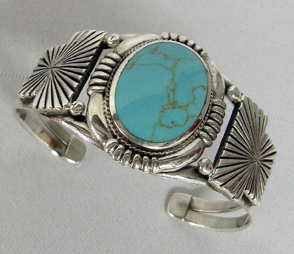 Navajo Silver Turquoise Bracelet. Measures 6.75'' inside including opening and 1.5'' wide. SHI $15.